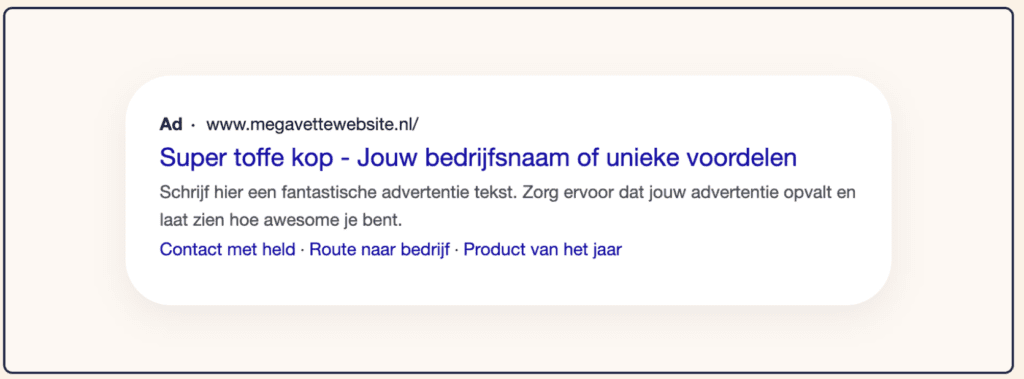 Maak gebruik van zoekmachine-advertenties, zoals Google Ads, om je bedrijf bovenaan de zoekresultaten te plaatsen. Je kunt daarmee zoekwoorden selecteren die relevant zijn voor je producten of diensten, en betaalt dan elke keer een bedrag als iemand klikt op je advertentie. De hoogte van dat bedrag verschilt per zoekwoord. Op deze manier leid je gericht verkeer naar je website en bereik je potentiële klanten op het moment dat ze actief op zoek zijn naar wat je aanbiedt. Je kunt ervoor kiezen om dit zelf te leren door bijvoorbeeld video’s te bekijken op YouTube, maar dit is een specialisme dat best wat tijd kost. We adviseren dan ook eerder om een SEA-specialist op freelance basis inhuren om het voor je te doen.